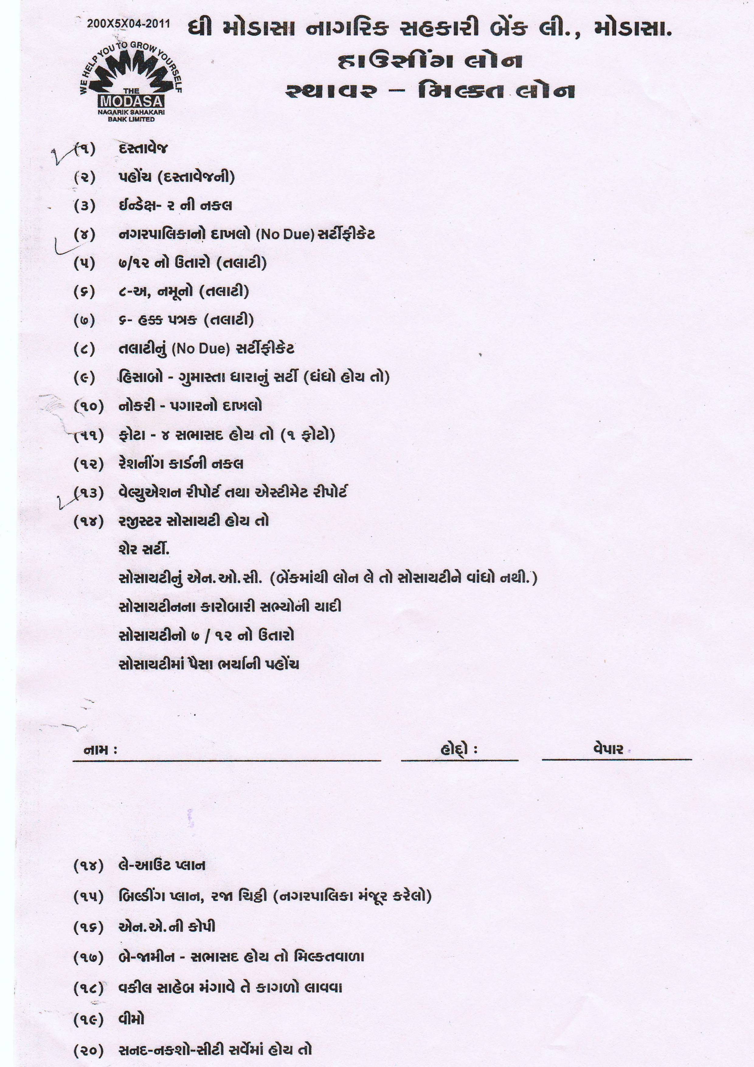 Housing Loan Document